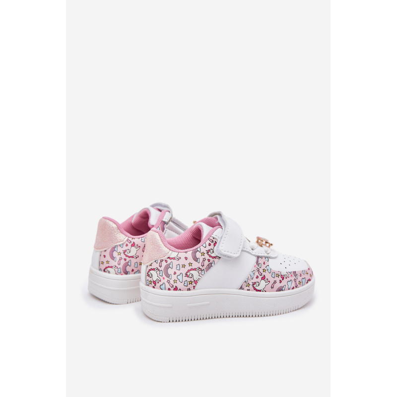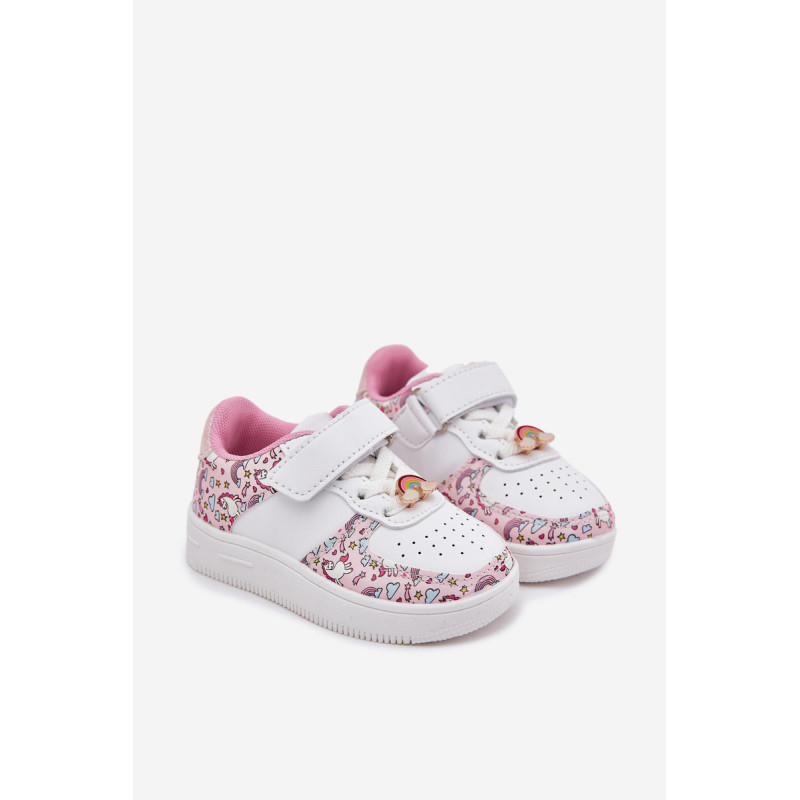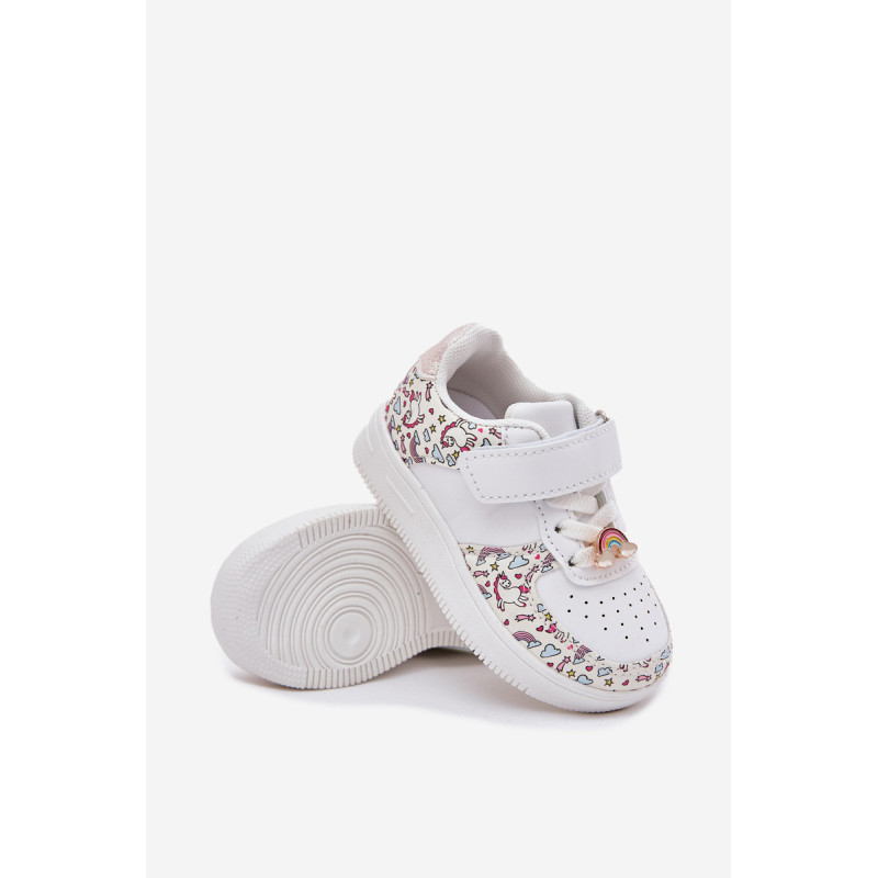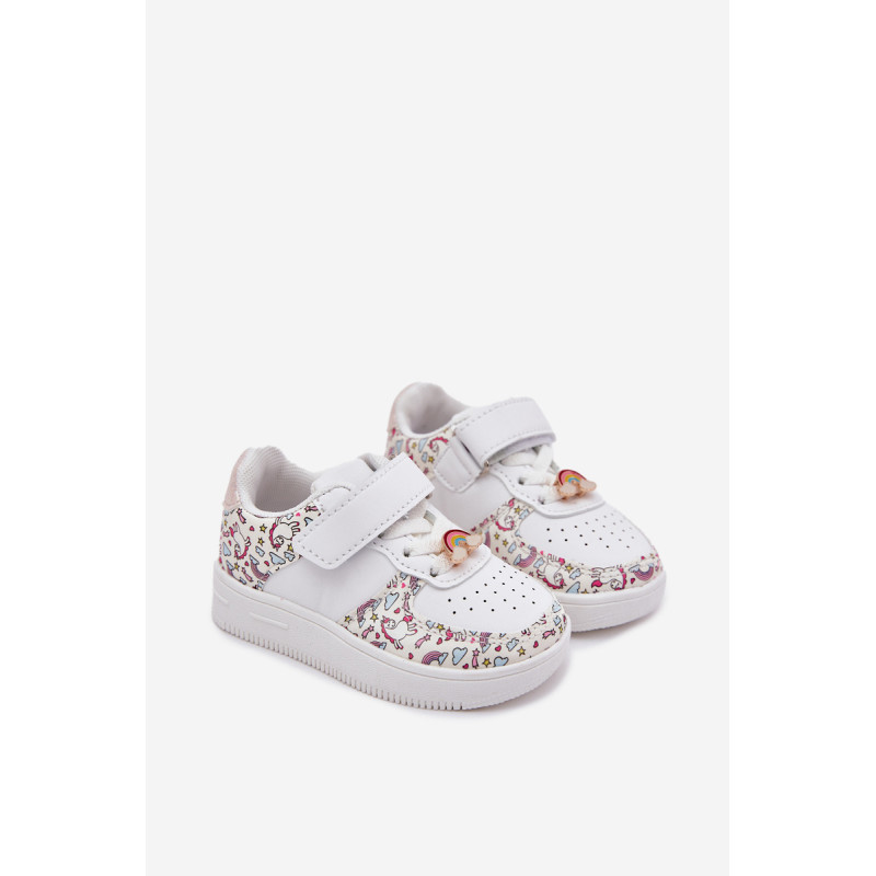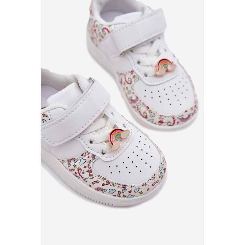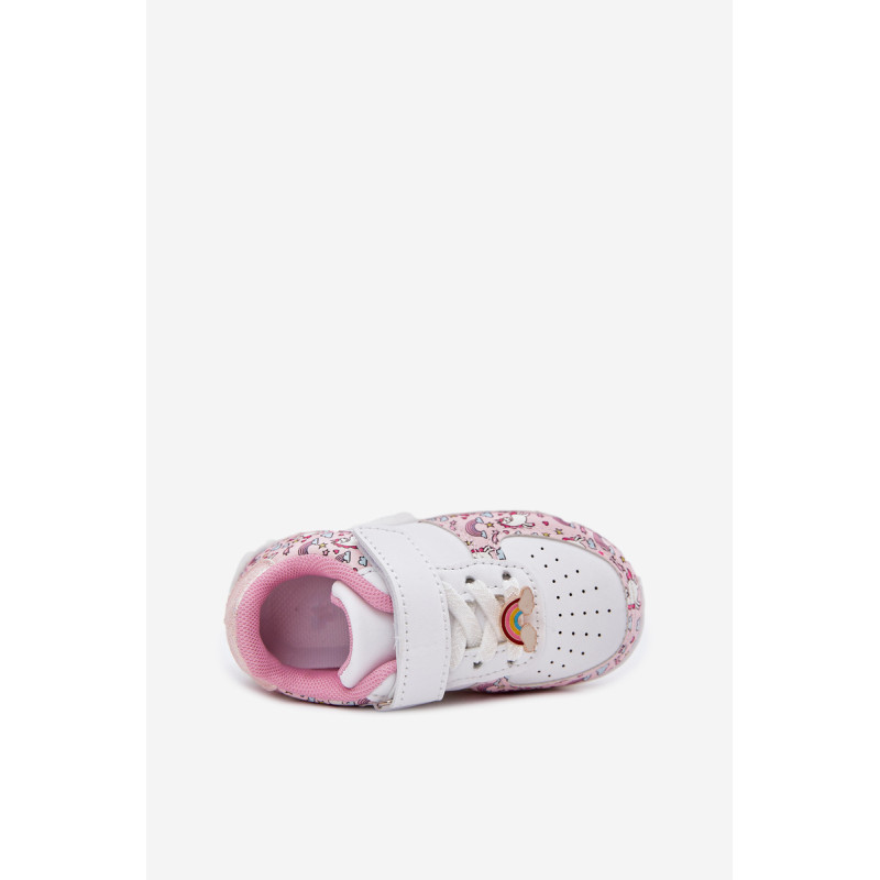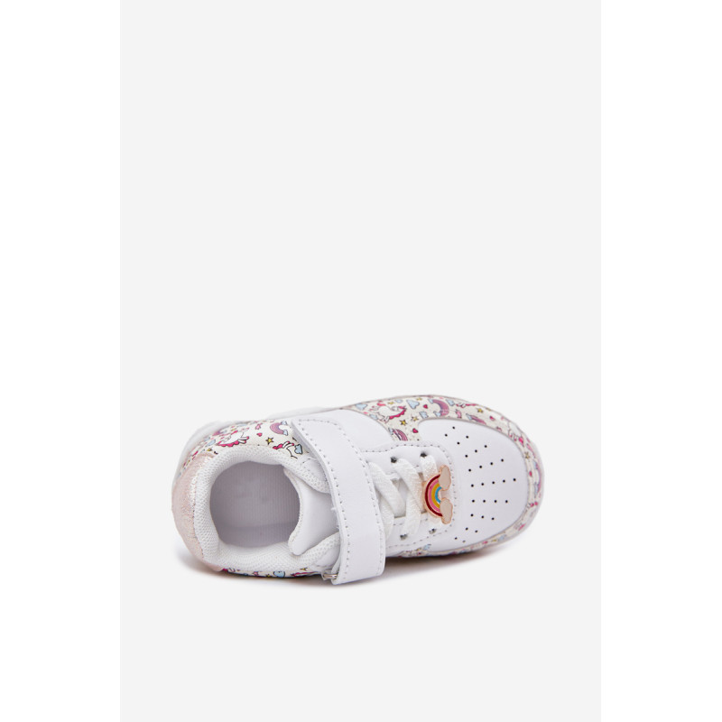 Vaikiški sportiniai batai su vienaragio motyvu. Užsegami lipnia juostele, su elastinėmis juostelėmis, imituojančiomis raištelius, užtikrina komfortą ir lengvumą užsidėti. Vaivorykštės segtukas prideda žavesio. Minkšta vidpadis užtikrina komfortą visą dieną, todėl tai puikus pasirinkimas darželiui, mokyklai ir žaidimams lauke. Renkantis dydį, vadovaukitės dydžių lentele.