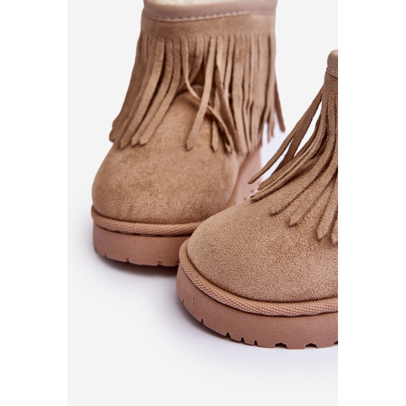 Šaltomis dienomis verta pasirūpinti patogia avalyne. Vienas iš mūsų pasiūlymų yra šie madingi batai, sniego batai, galimi kelių versijų ir spalvų. Pagaminta iš ekologiškos zomšos. Pastatykite ant guminio pado. Vidus apšiltintas storu kailiu. Viršutinė dalis virš kulkšnies puošta kutais. Būtinai peržiūrėkite visą mūsų sniego batų asortimentą. Rinkdamiesi dydį, žiūrėkite dydžių lentelę.