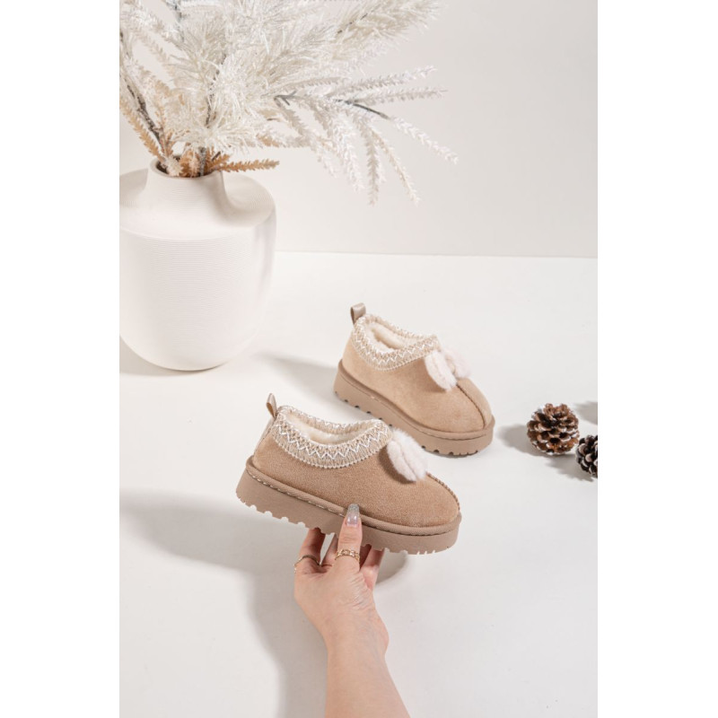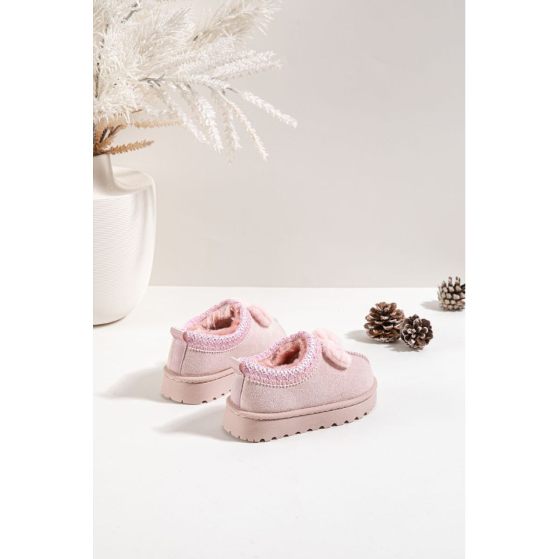 Vaikiški sniegliai, pagaminti iš minkšto ekologinio zomšos, yra puikus pasirinkimas žiemą dienoms. Modelis papuoštas siuvinėtais raštais ir miela kaspinėliu, suteikiančiu mergaitišką žavesį. Batai yra iškloti šiltu kailiu, teikiančiu komfortą ir apsaugą nuo šalčio. Guminė padas užtikrina gerą sukibimą ir stabilumą ant slidžių paviršių. Idealiai tinka kasdienėms žiemos žaidimų ir pasivaikščiojimų progoms. Renkantis dydį, vadovaukitės dydžių lentele.