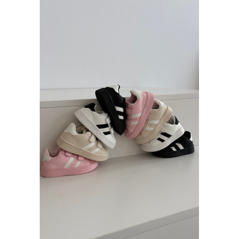 Vaikų sportbačiai, pagaminti iš patvarios ekologiškos odos, yra puikus pasirinkimas kasdieniam naudojimui – darželyje, mokykloje ar lauko žaidimuose. Guminė pado medžiaga suteikia gerą sukibimą ir elastingumą, todėl batai yra patogūs ir saugūs dėvėti. Priklausomai nuo dydžio, modelis turi skirtingus užsegimo būdus – dydžiai 21–24 turi du velcro diržus, o 25–36 – tris, tai palengvina užsidėjimą ir pritaikymą prie vaiko pėdos. Renkantis dydį, vadovaukitės dydžių lentele.
