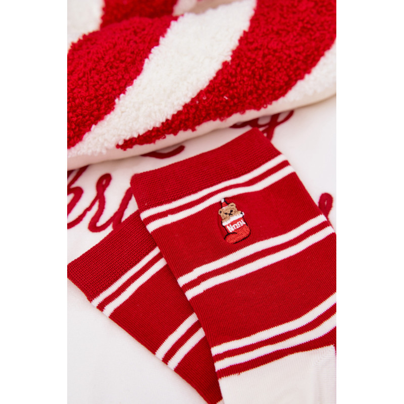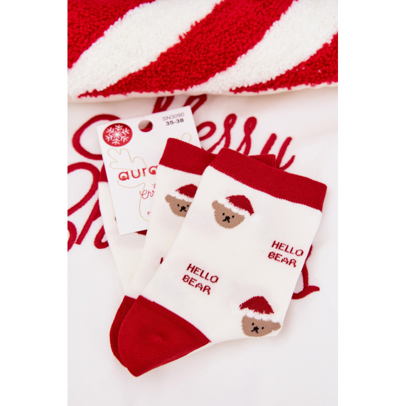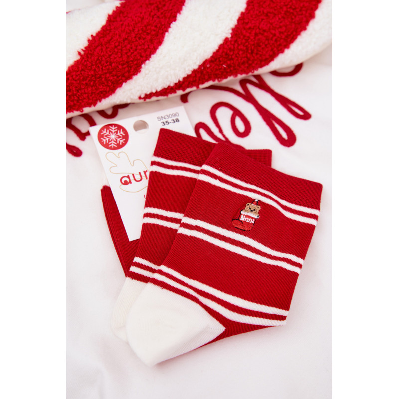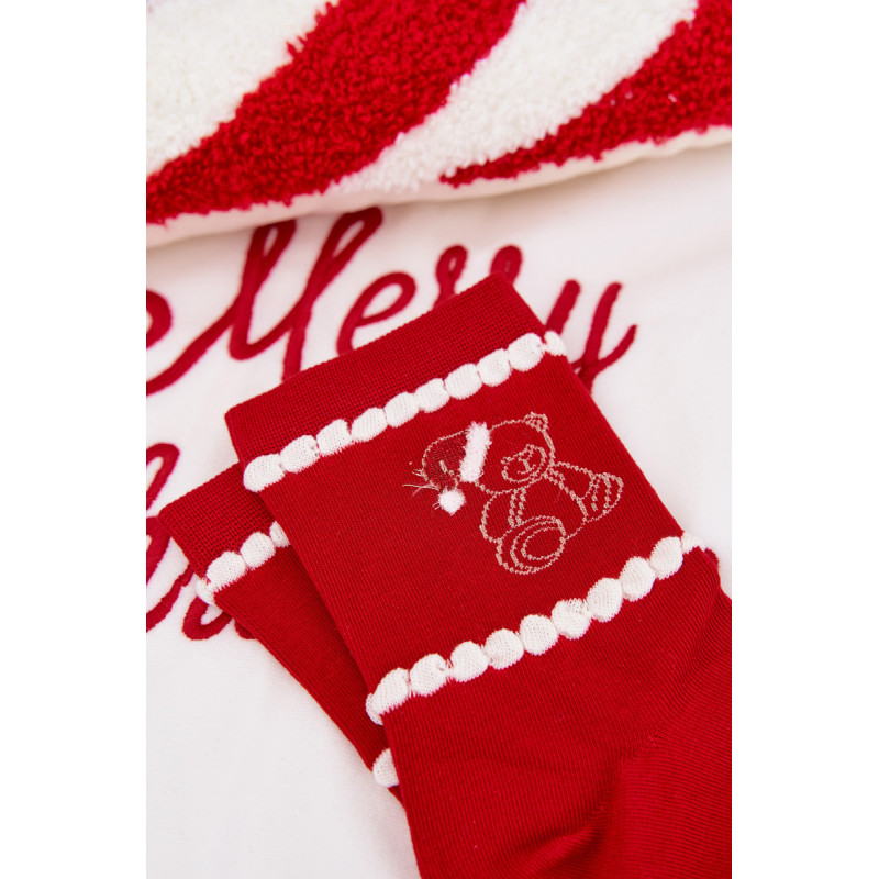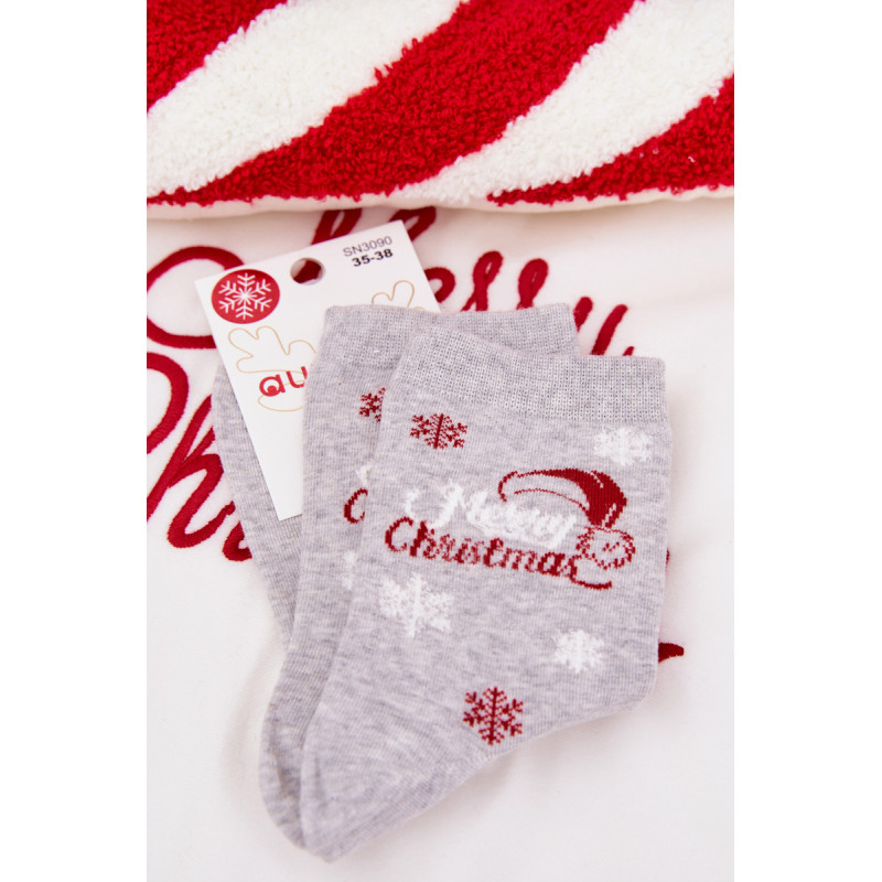 Moteriškos kojinės šventiniame nuotaikoje yra mielas aksesuaras, kuris įneš šiek tiek žiemos atmosferos į kasdienį stilių. Pasiekiamos keliuose raštuose. Patogios ir kupinos žavesio — puikiai tinka kasdieniam dėvėjimui, kaip dovana ar subtilus šventinis akcentas jūsų garderobe.