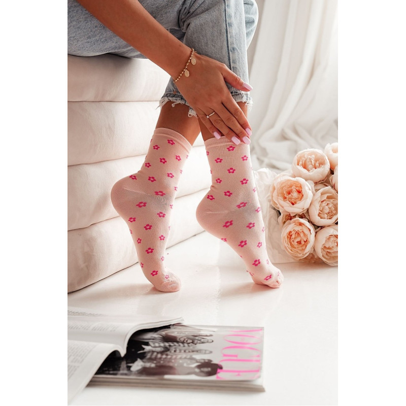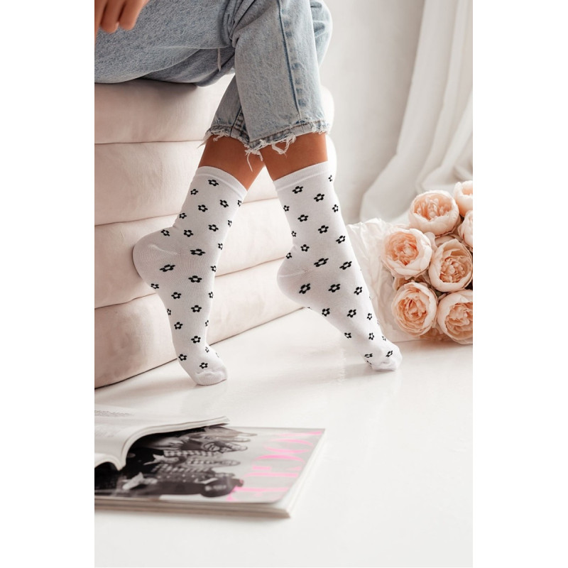 Moteriškos Kojinės Su Mažomis Gėlėmis Baltos 200345