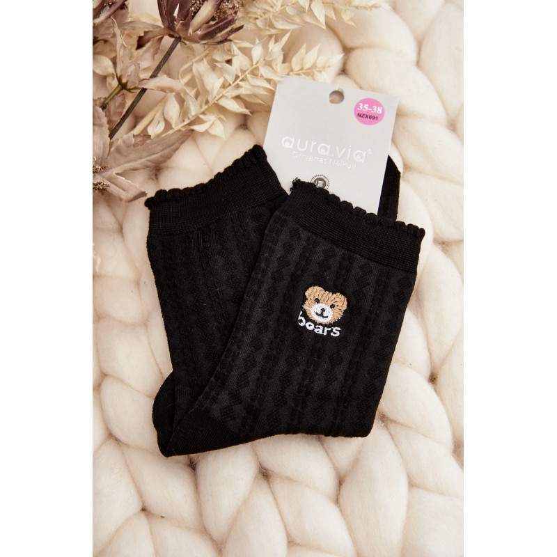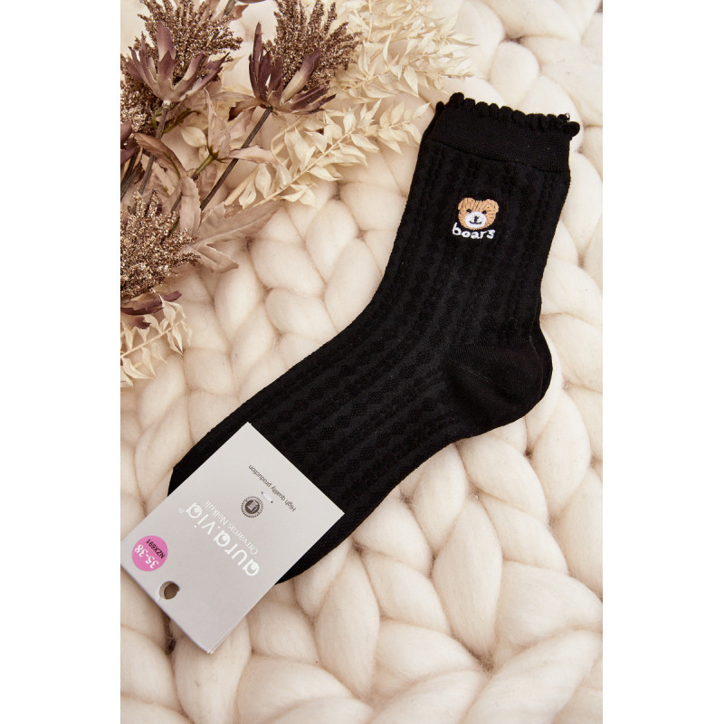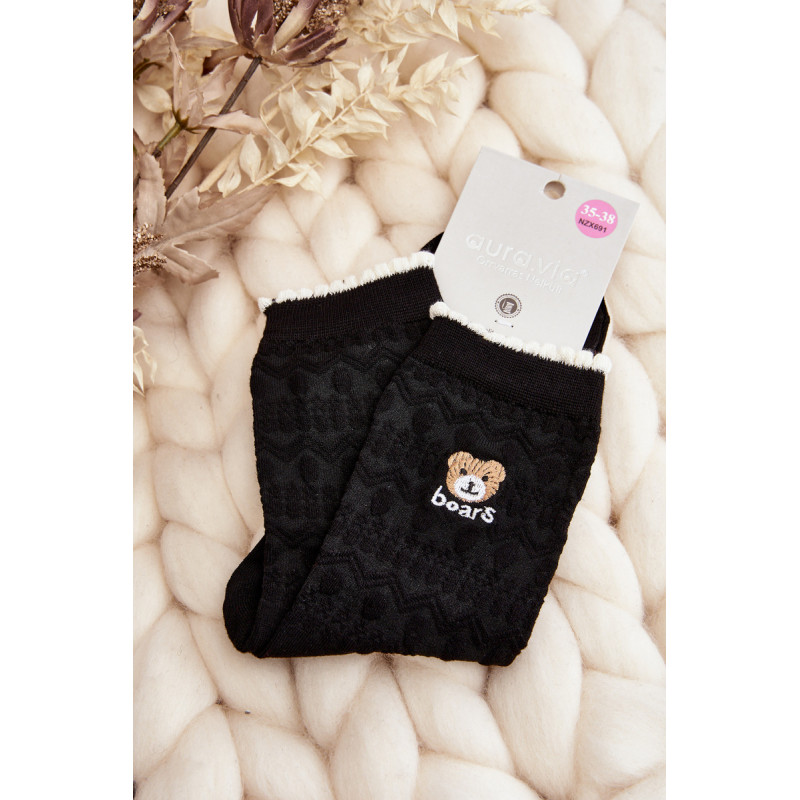 Raštuotos moteriškos kojinės su juodu meškučiu 199106