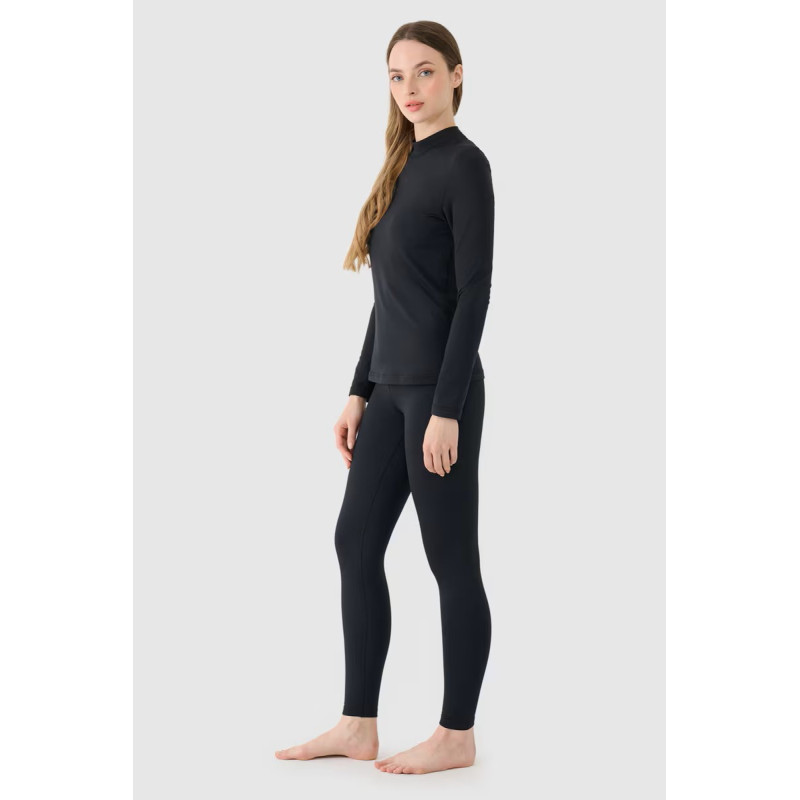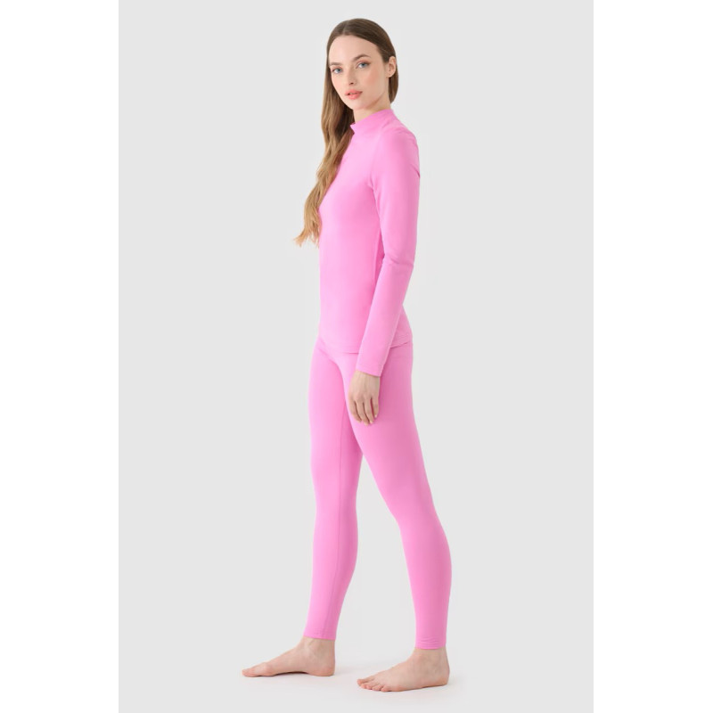 Šiltas drabužiai su švelniu apdaru laiko šilumą arti kūno, užkertant kelią šilumos praradimui žemose temperatūrose. Jie turi aptemptą, liekną kirpimą, kuris prilimpa prie kūno, ir pilno ilgio kojas, siekiančias virš čiurnos. Pagaminti iš mezgimo su šiltu, šukotu vidiniu sluoksniu ir lygiu išoriniu paviršiumi. Malonus odai ir minkštas liesti. Idealiai tinka kaip izoliacinis, antras sluoksnis (second layer), kurį galima dėvėti tiesiogiai virš terminių leggingų ar po kelnėmis, ypač šaltomis ir žieminėmis dienomis. Šilti termalinis apatiniai pagaminti iš sintetinio medžiagos, užtikrinančios ilgaamžiškumą ir lengvą priežiūrą. Dėl elastano (10%) priedo medžiaga yra elastinga ir patogiai priglunda prie kūno. Moteriški terminiai leggingai su greitai džiūstančiais pluoštais, kurie padeda išgarinti drėgmę nuo kūno. Platus aukštas juosmens diržas.