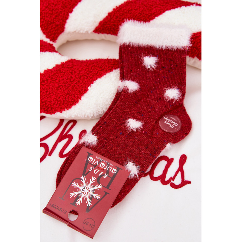 Vaikų Kalėdinės Kojinės Širdys Su Kailiu Vilna Alpaka Raudona 202121