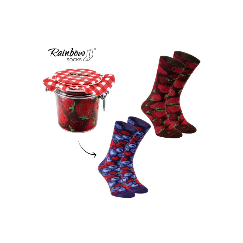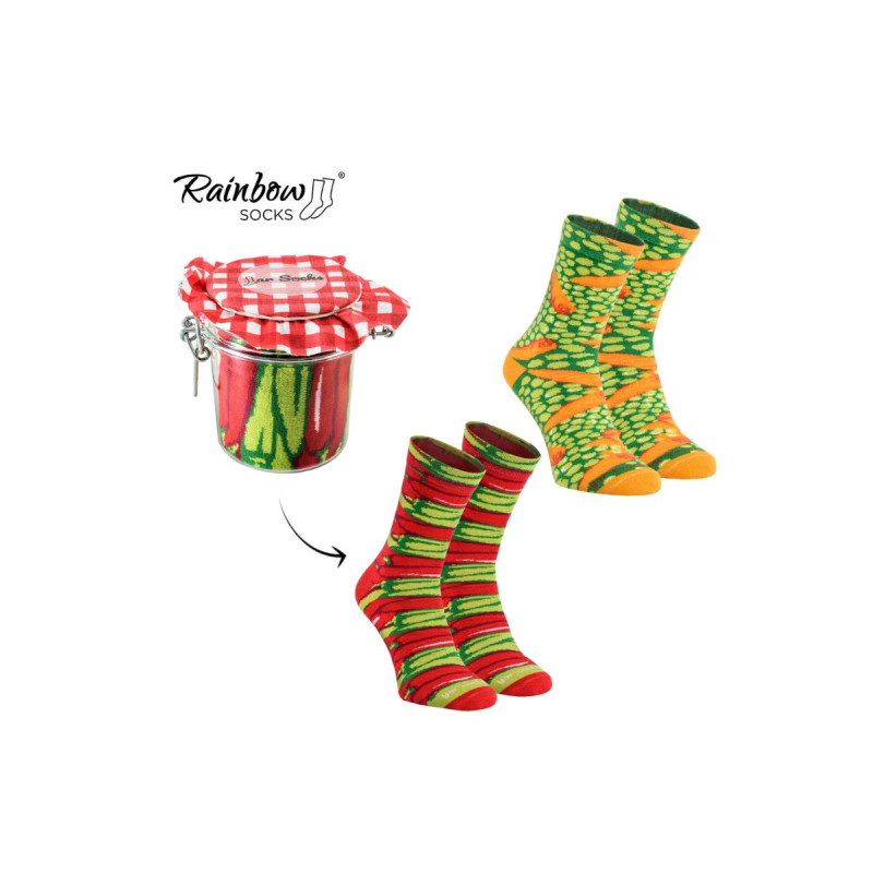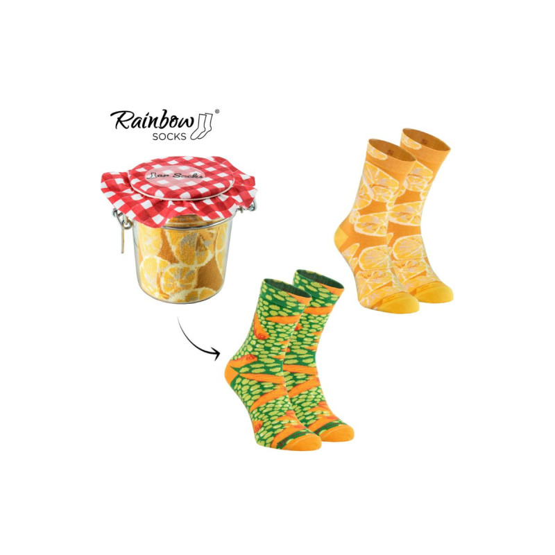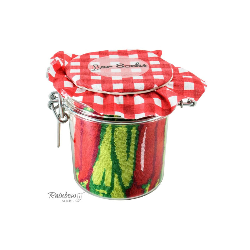 Jar by Rainbow Socks – tai originali kojinių koncepcija, kurios dizainas primena pipirus ir žirnelius su morkomis, laikomus namų stiklainiuose. Mūsų idėja buvo sukurti itin spalvingas, patogias ir aukščiausios kokybės kojines, užsegtas tokia forma, kokios pasaulis dar nematė. To dėka mums pavyko sukurti originalią ir paruoštą dovanoti dovaną. Įdomus faktas yra tai, kad mes naudojame stiklainius, kurie savaime yra labai originali koncepcija.