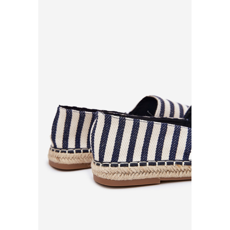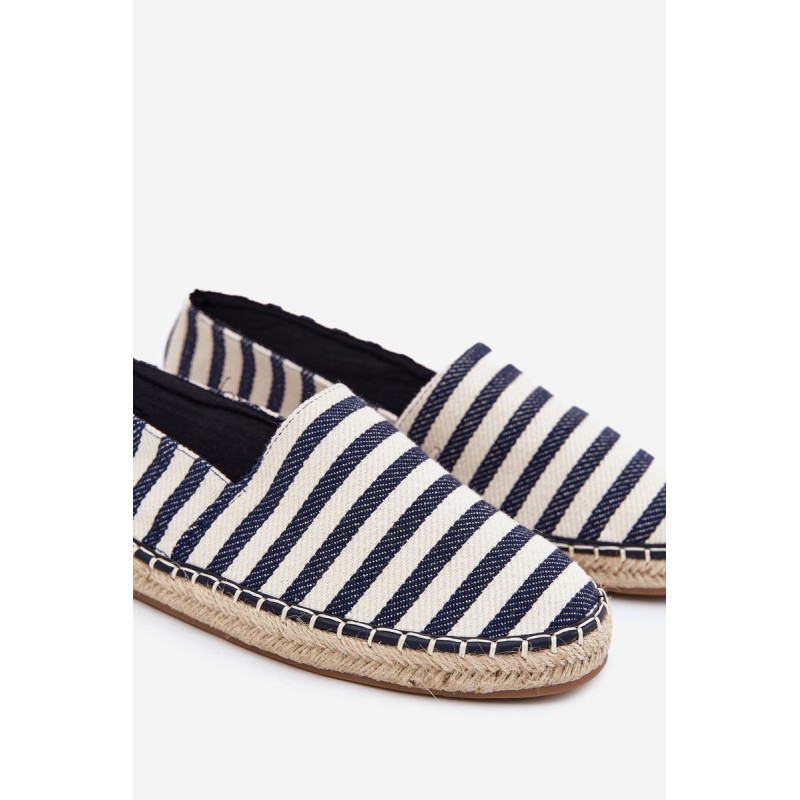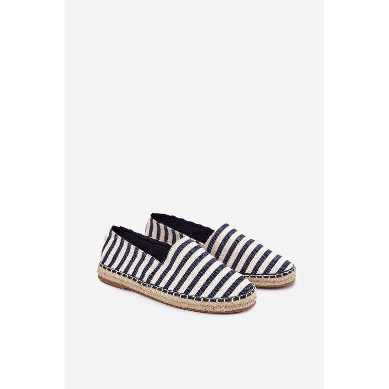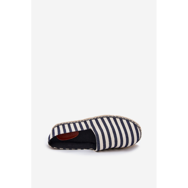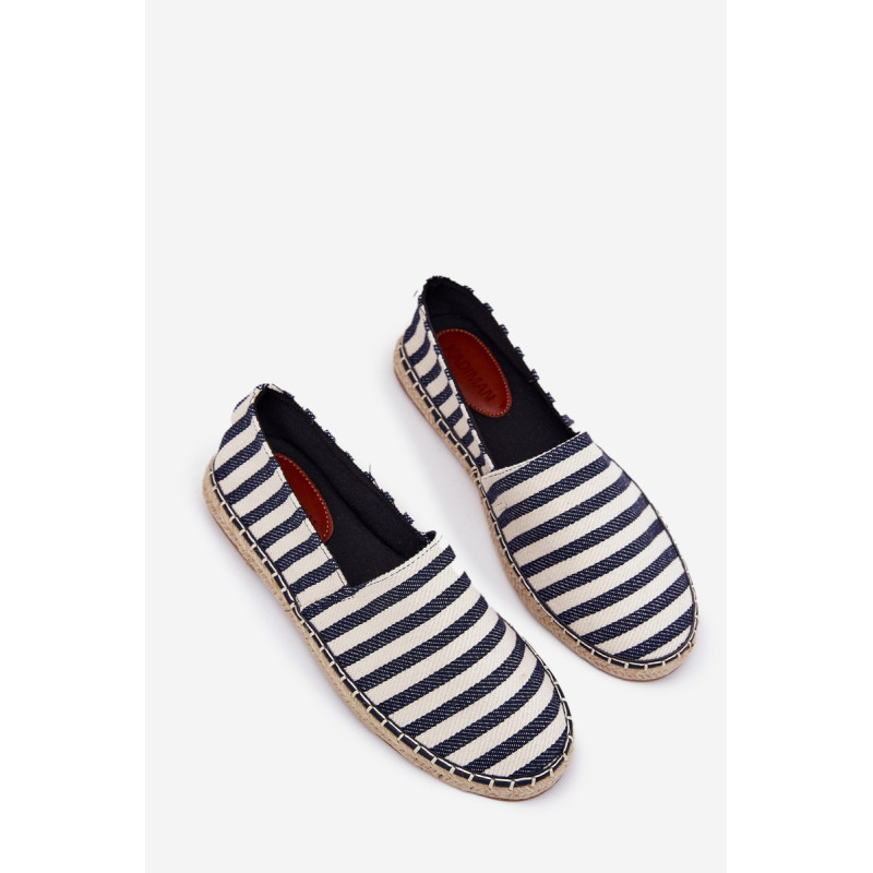 Vyriški tekstiliniai espadrilės, sumontuoti ant pintos pado, yra klasikinė pasirinkimo galimybė šiltomis dienomis. Juostuotas raštas suteikia jiems lengvą, atostogų pobūdį. Idealiai tinka kasdieniams stiliams karštomis dienomis, jie sujungia komfortą su madingu išvaizda. Renkantis dydį, vadovaukitės dydžių lentele.