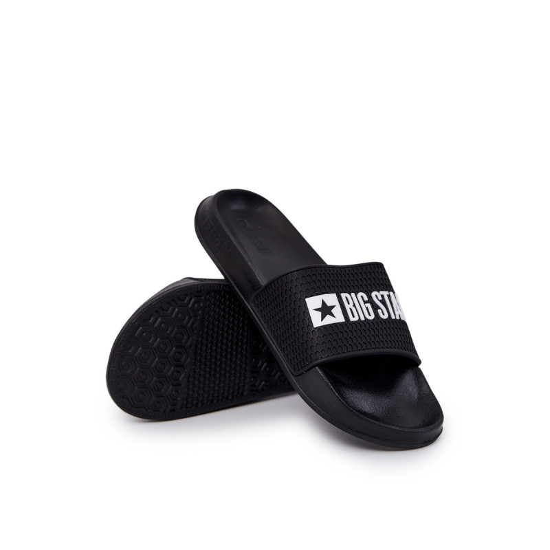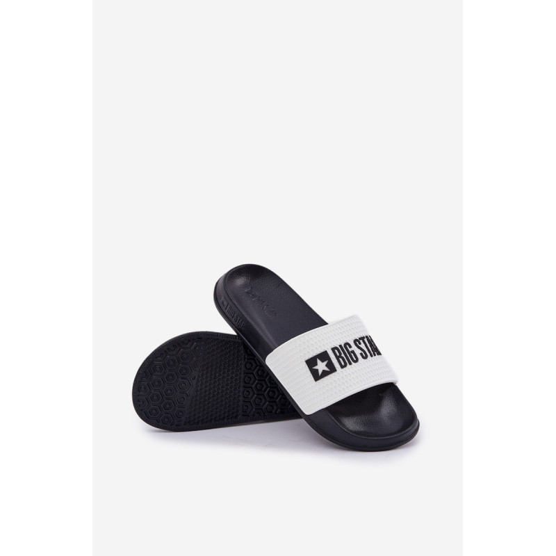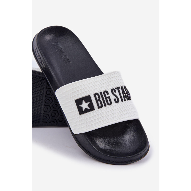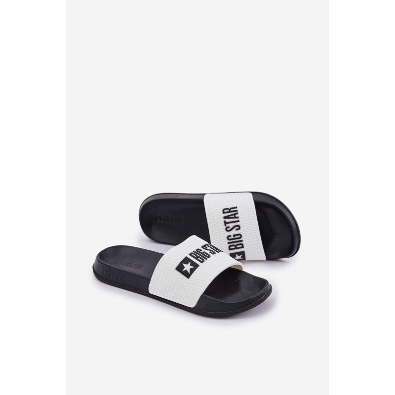 Lengvos ir patogios Big Star šlepetės. Profiliuotas įdėklas pagamintas iš plastiko. Batų viršus apdailintas gumine medžiaga su korio raštu su Big Star logotipu. Jis atsparus dilimui. Puikus modelis daugeliui vasaros sezonų. Batai pralaidūs orui ir lengvai valomi. Labai praktiškas ir patogus vasarinis modelis. Jūsų kojos nebebus pavargusios! Modelis taip pat puikiai tinka baseine ar paplūdimyje. Renkantis dydį, naudokite dydžių lentelę.