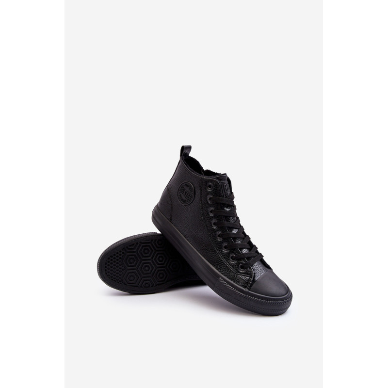 Klasikiniai vyriški sportbačiai iš prekės ženklo Big Star su čiurnos viršumi. Pagaminta iš eko odos. Pastatytas ant guminės medžiagos platformos. Šis modelis šone užsegamas užtrauktuku. Suvarstymas priekyje. Prekės ženklo logotipas viršuje. Vidus apšiltintas batų pamušalu. Sustiprintas pirštų dangtelis. Renkantis dydį, žiūrėkite dydžių lentelę.