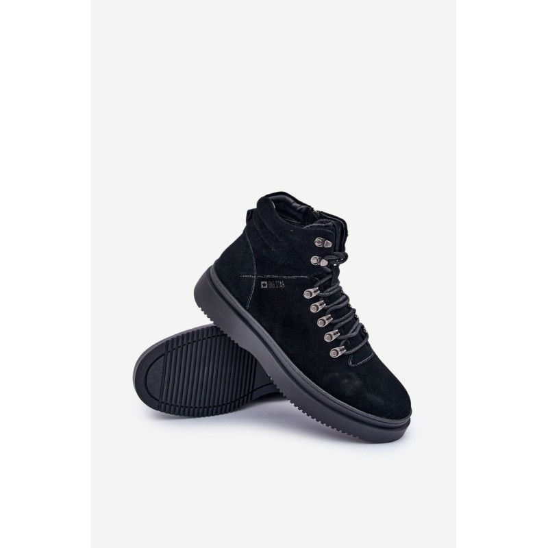 Vyriški „Big Star“ batai iš natūralios zomšos yra puikus pasirinkimas šaltesnėms dienoms. Suvarstymas su papildomais kabliukais palengvina batų prigludimą prie kojos. Suapvalinti pirštai suteikia pakankamai vietos pirštams, todėl batai yra patogūs visą dieną. Batų pamušalu apšiltintas vidus garantuoja šilumą ir komfortą net žiemos sąlygomis. Šie kulkšnies batai tinka tiek kasdieniam dėvėjimui, tiek ilgesniam pasivaikščiojimui vėsesniu oru. Rinkdamiesi dydį, žiūrėkite dydžių lentelę.